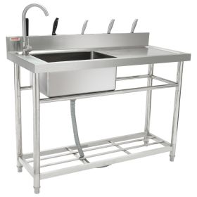 VEVOR Stainless Steel Utility Sink, Free Standing Single Bowl Commercial Kitchen Sink Set w/Workbench (Product Type: Left Single Slot with Platform, Length: 47 inch)