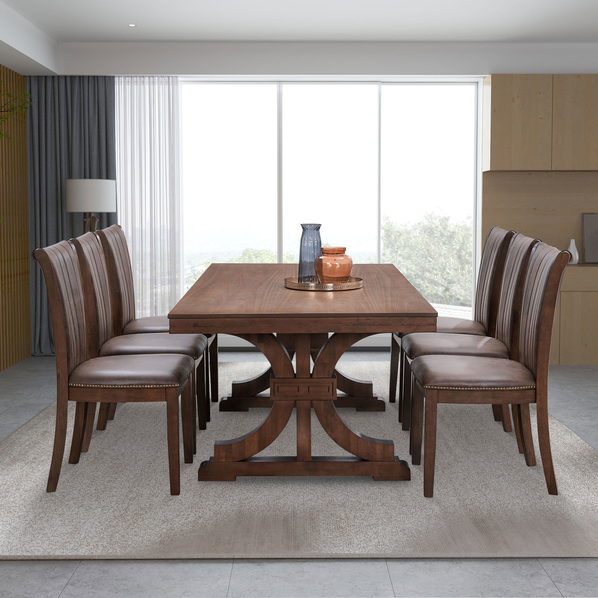 [Dining Table Set]This 7-piece dining table set is elegant and retro, not only perfectly blends with any style of home decoration, but also adds a retro feel to your space.