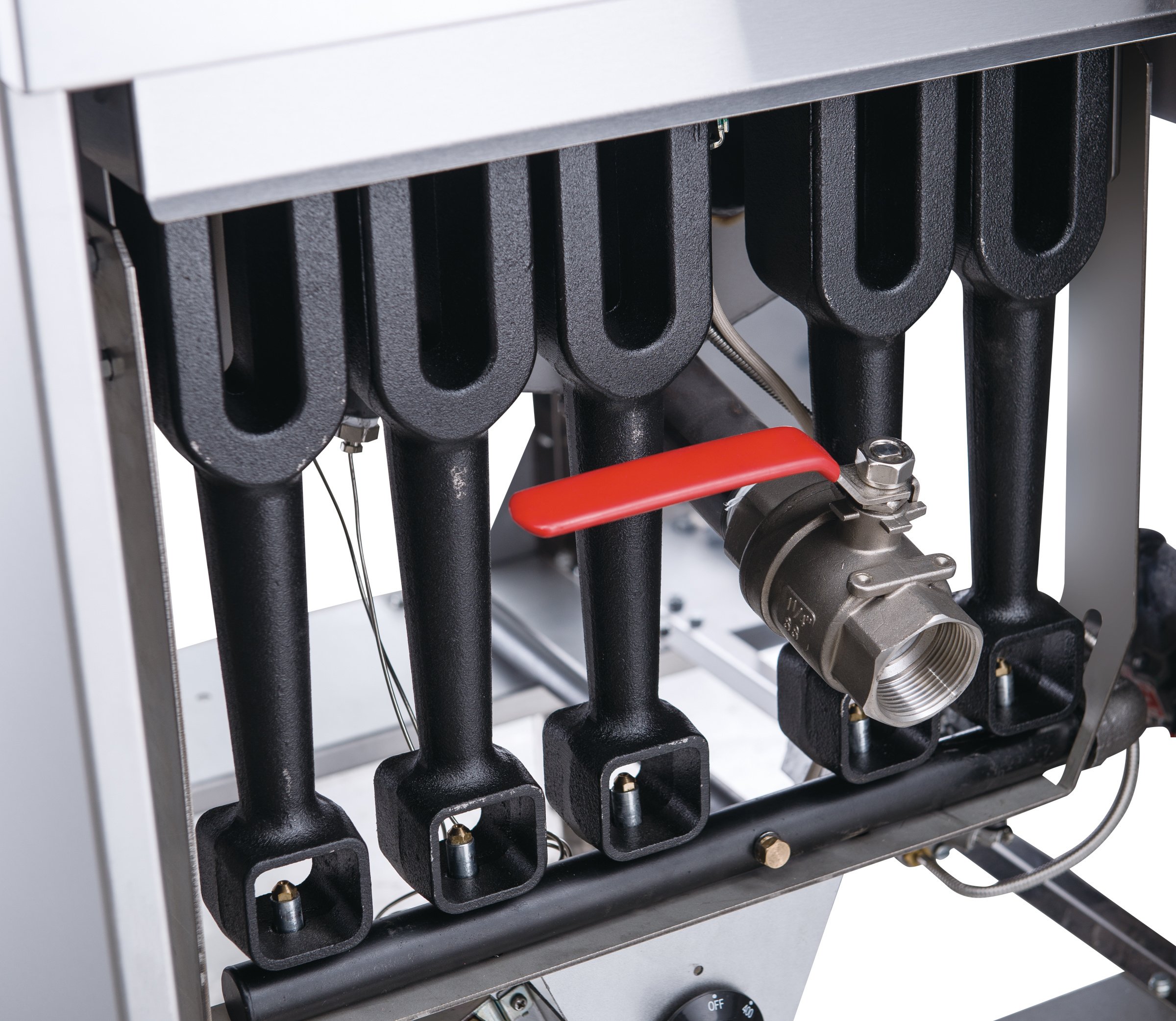 The high efficiency, cast iron burners create a large heat-transfer area forreliable, even heat distribution. Our durable temperature probe senses temperaturechanges and activates a quick burner response. The temperature for all the Dukersfryers goes from 200°F (93°C) to 400°F (204°C). Includes Millivolt safety controlsystem. Every inch of the frypot and cold zone can be cleaned and wiped down byhand. The large cold zone and forward sloping bottom help collect and removesediment from the frypot to safeguard oil qualityand support routine frypot cleaning.
