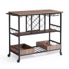 VEVOR 3-Tier Bar Serving Cart Rolling Trolley with Wine Grid Glass Holder 300LBS