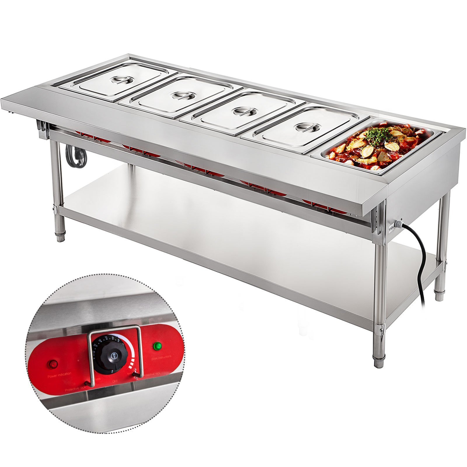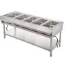 This 3750w steam table is made of food-grade stainless steel, not easy to deformed and easy cleaning. It can hold 5 food pans, whose temperature can be independently controlled by 5 rotary knobs. With temperature 30-100°C (86-212°F) adjustable. It is widely used in restaurants, canteens, and other catering industries.