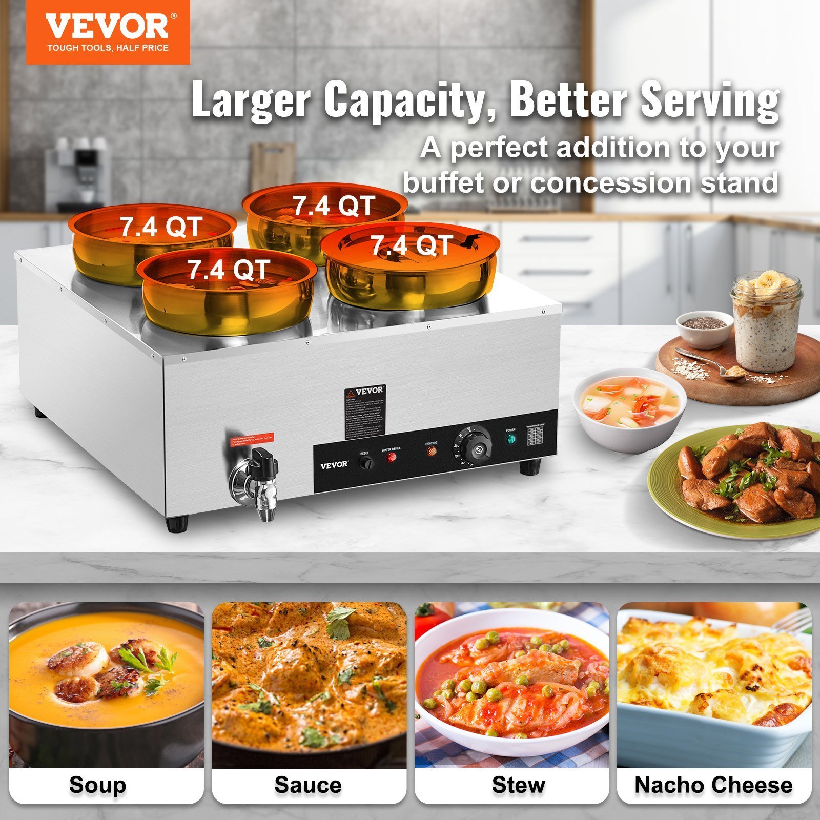 Home > VEVOR Electric Soup Warmer, Four 7.4QT Stainless Steel Round Pot 86~185°F Adjustable Temp